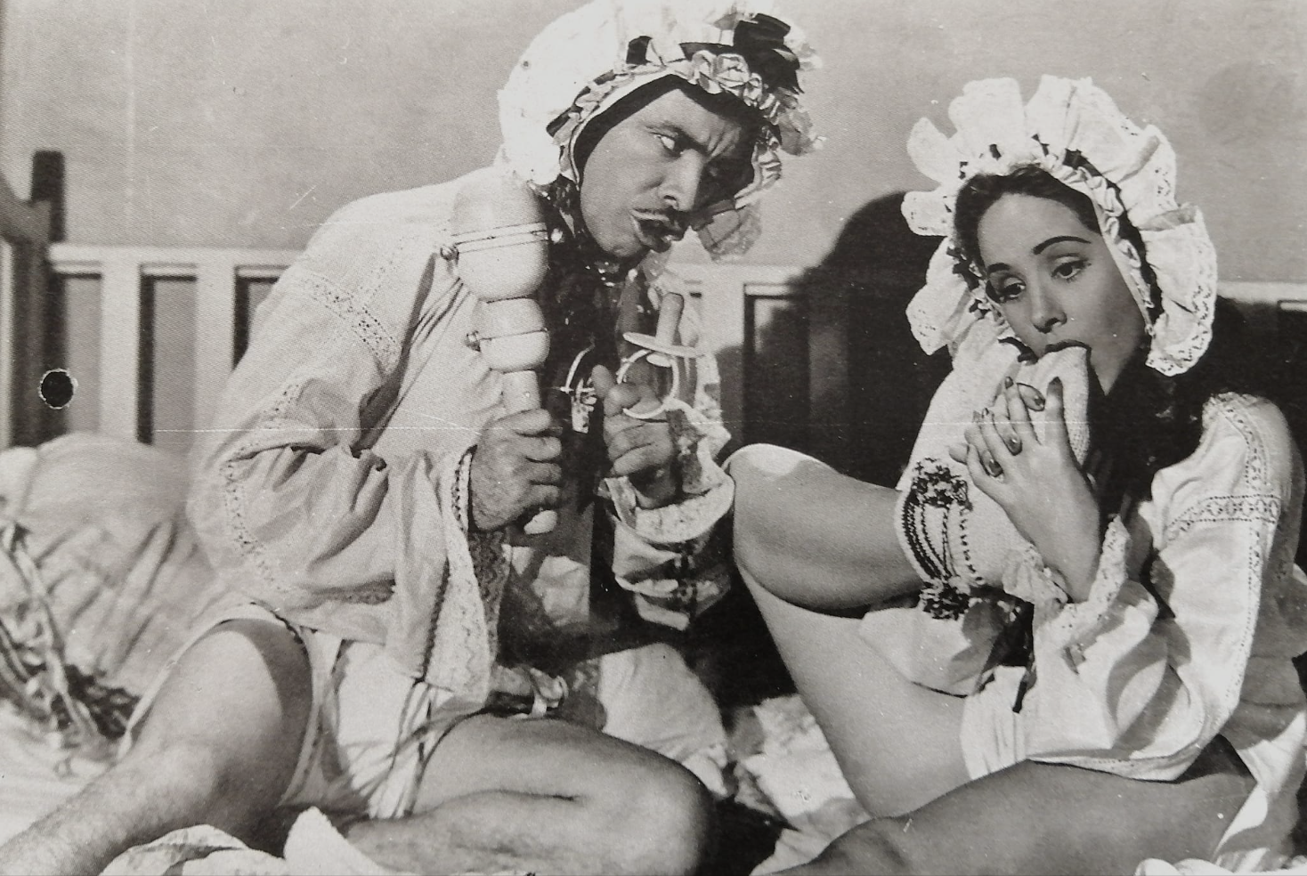 Tin Tan y Rosita Quintana en Calabacitas tiernas, de Gilberto Martínez Solares (1949). La película se llamaba en un principio ¡Ay qué bonitas piernas!, pero comercialmente (me imagino que por cuestiones de censura) adoptó el nombre con que se le conoce, basado en el dicho "¡Calabacitas tiernas, ay qué bonitas piernas!". Fue la primera colaboración entre Germán Valdez y Martínez Solares, pareja que sobre todo durante los años cincuenta produciría las mejores películas de Tin Tan (con los espléndidos guiones de Juan García "Peralvillo" y un maravilloso cuadro de actores que incluía al "Carnal" Marcelo, Vitola, Borolas, el enano Tun Tun y Ramón Valdés, entre otros).